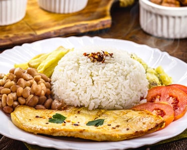 3- Arroz + feijão + filé de frango grelhado + salada